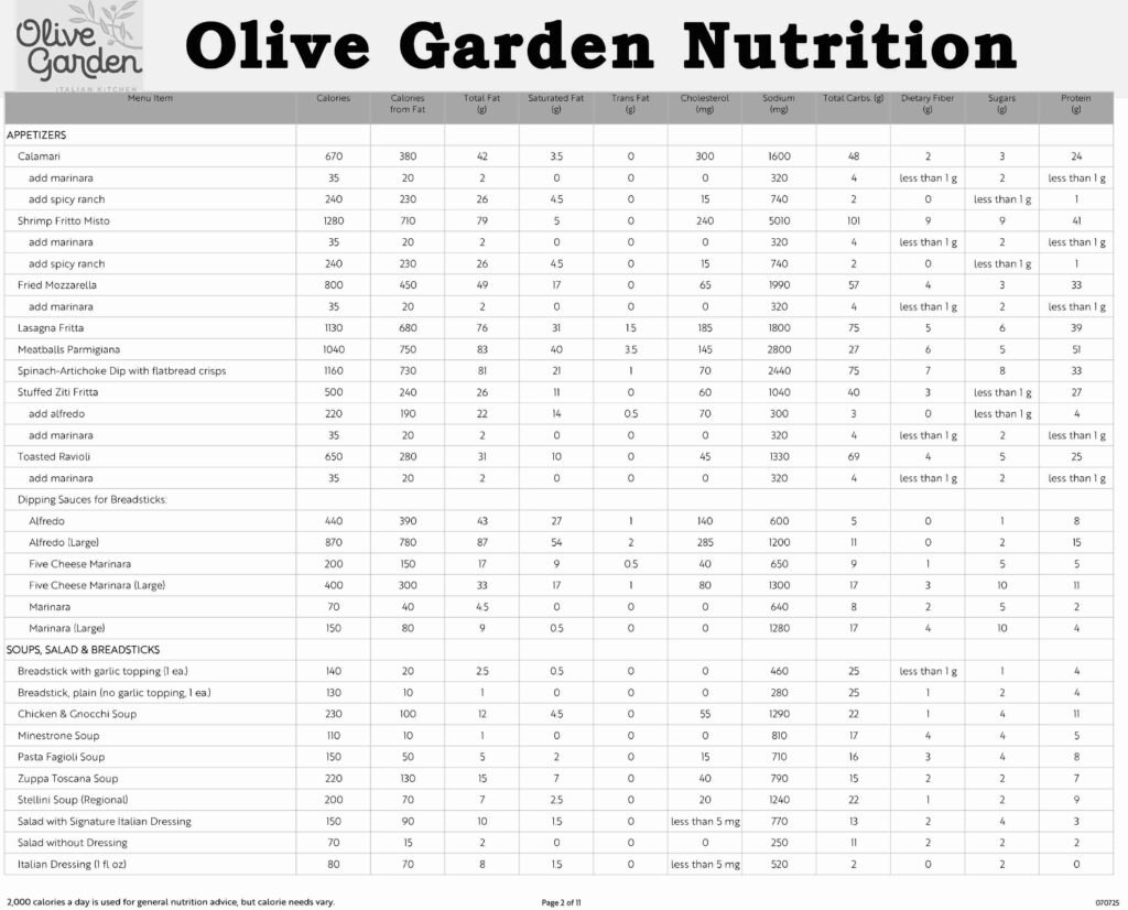 0 (0) Discover comprehensive nutrition facts for Olive Garden’s Italian menu, including calories, fat, sodium, carbs, and protein for pastas, sauces, and toppings. Make informed choices with detailed nutritional information for every meal option. Pastas Menu Item Calories Calories from Fat Total Fat (g) Saturated Fat (g) Trans Fat (g) Cholesterol (mg) Sodium (mg) Total … Continue reading Olive Garden Italian Nutrition Menu